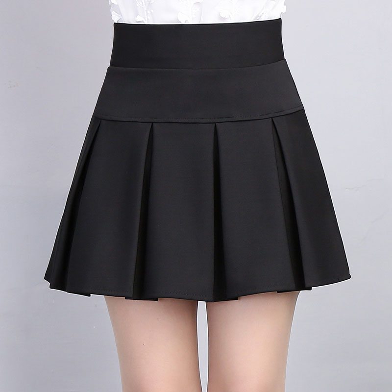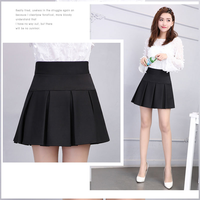 商品名称:17年春夏新款百搭半身裙蛋糕裙 a字裙 裤裙伞裙大码裙子超短裙女 松紧腰围 带裤边打底衬 涤针织面料