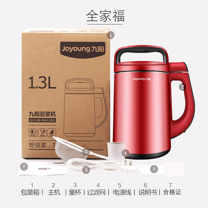 商品名称:Joyoung/九阳 DJ13B-N621SG全自动豆浆机家用特价正品旗舰店智能 会做饭煲汤 易清洗 双层全钢 无网研磨