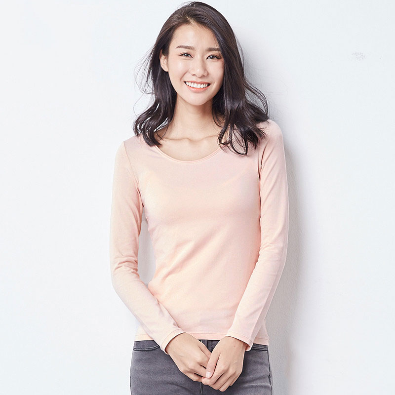 初棉纯色圆领长袖T恤打底衫秋衣女上衣体恤女士修身打底衣春秋 挺拔有型 棉氨材质 柔软舒适 耐洗耐磨